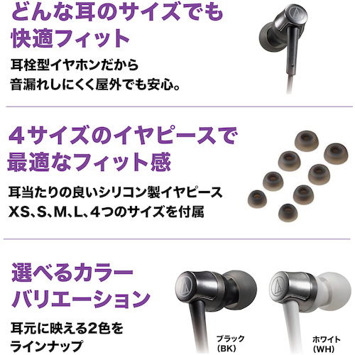 ●累計出荷台数約100万台の ATH-CKR30/30iS/300BT を受け継ぐ音響設計により、すべての音がオーディオ品質で聴けます。