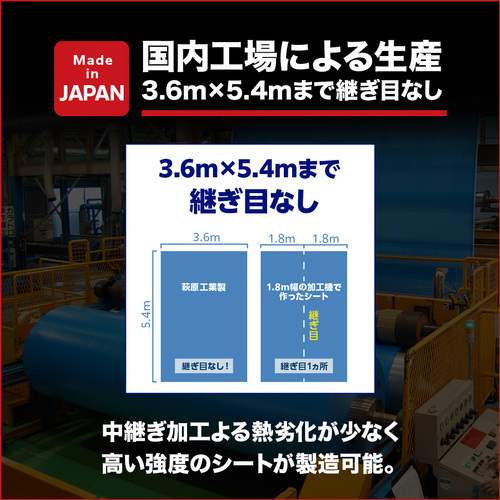 ●燃えにくい、燃え広がりにくい自己消火性ブルーシートです。