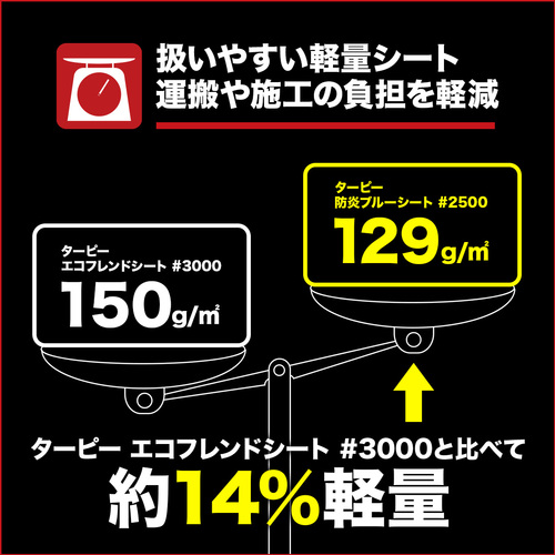 ●燃えにくい、燃え広がりにくい自己消火性ブルーシートです。