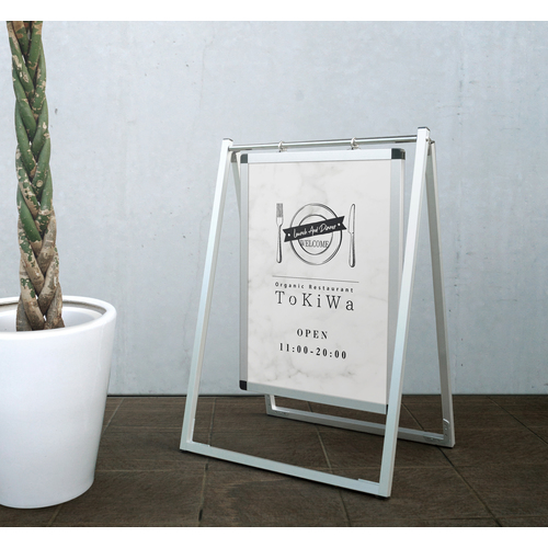 ●揺れるサインで視線をキャッチする、おしゃれなポスター用スタンド看板です。
