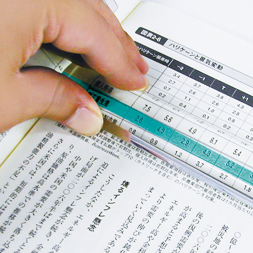 ●書類や本などの行読みに便利なカラーラインの入ったルーペです。
