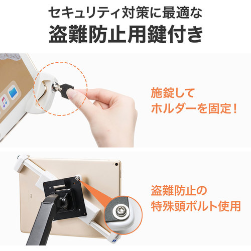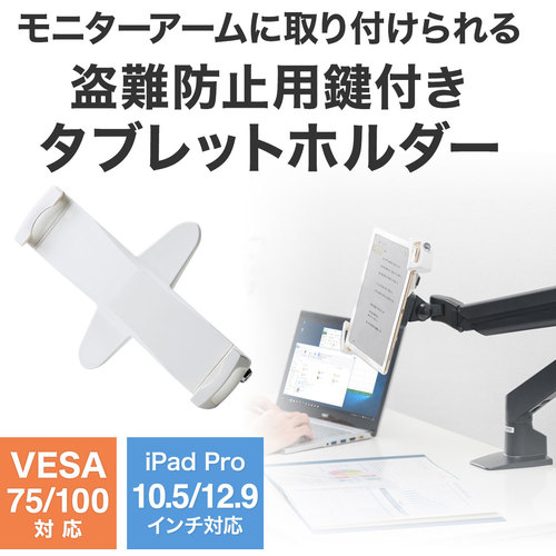 ●VESA75/100対応の盗難防止用鍵付きタブレットホルダーです。