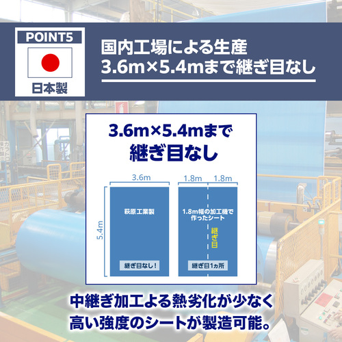 ●自社国産#3000ブルーシートと比べ、約2割軽量でありながら、約2倍(2年間)使用できるシートです。
