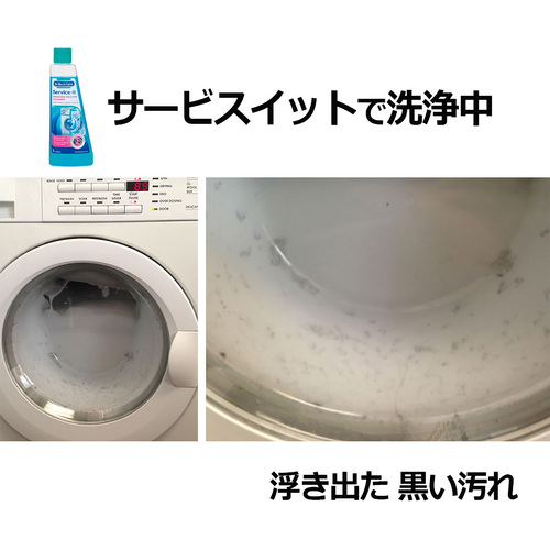 ●全自動洗濯機、乾燥機能付き全自動洗濯機:4リットルの水にサービスイットを50ml入れ、洗剤入れをはずし30分間その液に浸します。残留物がないように十分洗い流して、元の位置に戻します。