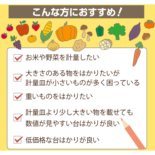 ●お米や野菜、大きな計測物の測定に。