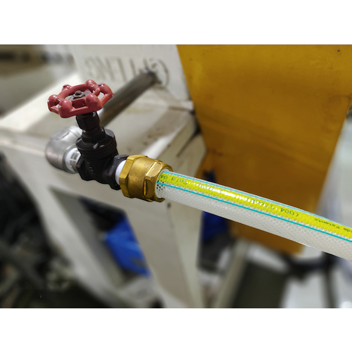 ●【非塩ビ耐圧ブレードホース】ホース内管にポリオレフィン系樹脂を使用し、圧送用ホースとして使用可能です。