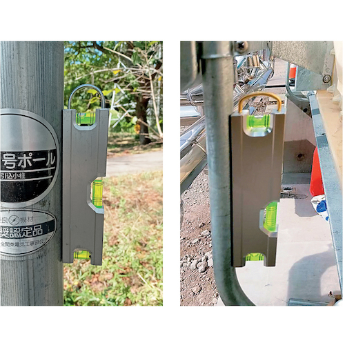 ●二連縦気泡管を採用し、上からも下からも垂直確認ができます。