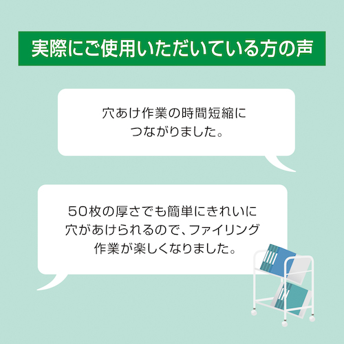 ●用紙を入れてボタンを押すと自動で穴あけ。