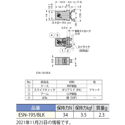 SUGATSUNE (140059195)ESN-195/BLKプッシュラッチ ESN-195/BLK