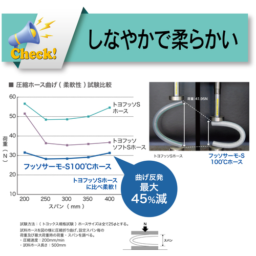 TOYOX 食品・化粧品・薬品等の搬送・吸引配管用ホース フッソサーモ-S100℃ホース 内径25.4mm×外径35.5mm 長さ10m FSTH100C-25-10 FSTH100C-25-10