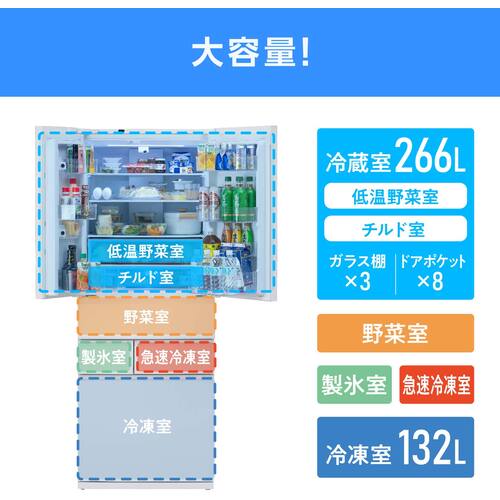 ●定格内容積:【全体】503L【冷蔵室】(チルド室)266L(9L)【野菜室】66L【冷凍室】132L【急速冷凍室】24L【製氷室】15L