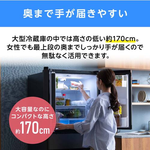 ●フレンチドアモデル、6ドアで使う場所を選ばない冷蔵庫です。間取りによるドアの開閉方向を気にしなくてOK。