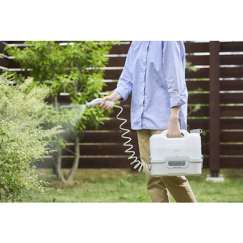 ●電源や水道が無い場所でも使用することができる充電式ポータブルウォッシャーです。