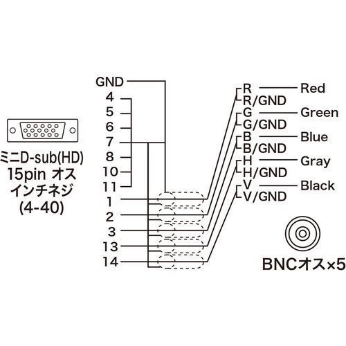 ●HD(3WAY)15pinオス(インチネジ)-BNC×5