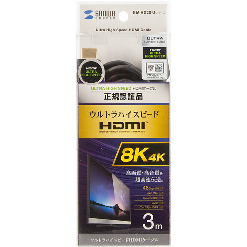 ●ULTRA HIGH SPEED HDMI認証プログラム合格のウルトラハイスピードHDMIケーブルです。