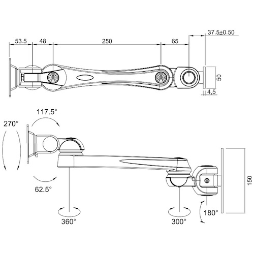 ●品名:側面用水平多関節モニターアーム(縦方向レール用)