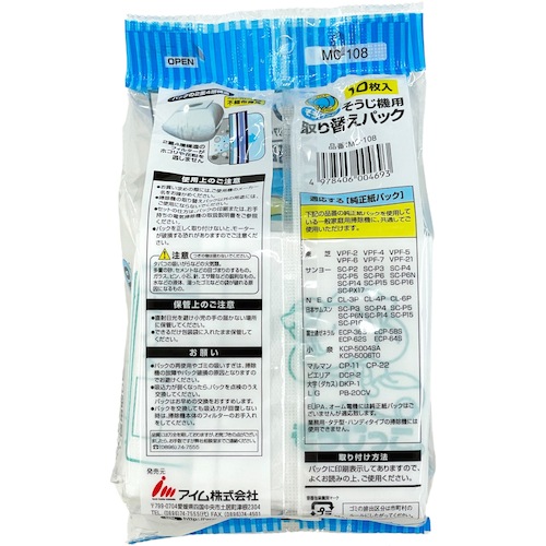 そうじっこ そうじ機用取り替えパック 東芝・サンヨー・NEC・日本サムスン用 10枚入 MC-108