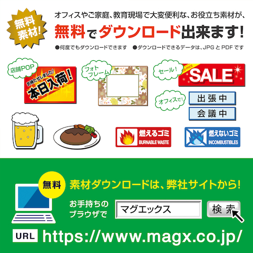 ●超薄型マグネット用紙でレーザープリンタで直接印刷できる為、直ぐに掲示ができる