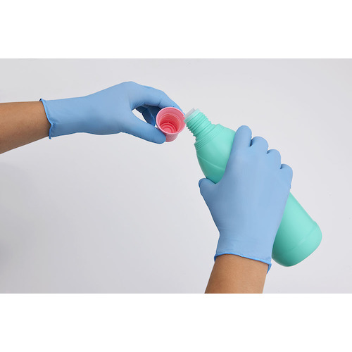 ●厚み約0.06mm、衛生的な粉なし(パウダーフリー)タイプの使い捨てニトリルゴム手袋(ニトリル手袋)。