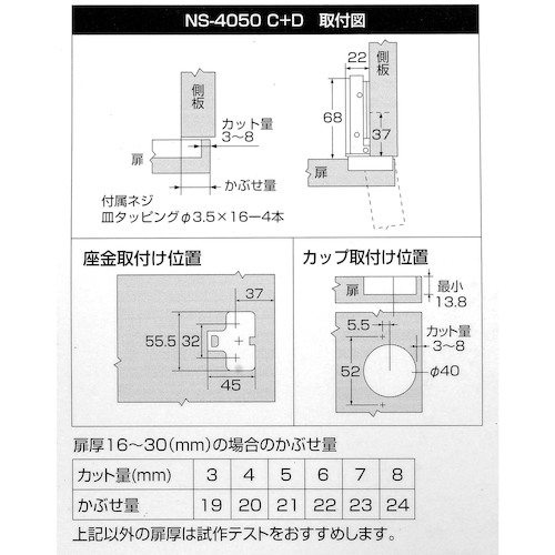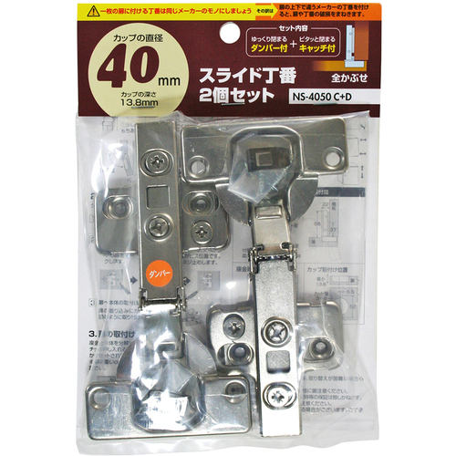 9. WAKI スライド丁番2個セット NS‐4050 C+D2P 40mm 全かぶせ ダンパー付き+キャッチ付き NS4050 C+D