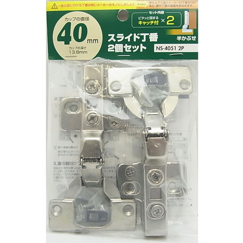 WAKI スライド丁番2個セット NS‐4051 2P 40mm 半かぶせ キャッチ付きX2 NS4051 2P