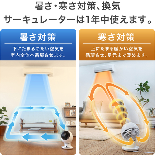 ●エアコンとの併用で夏は冷気を部屋全体へ、冬は暖かい空気を足元へ循環させ一年中使えます。