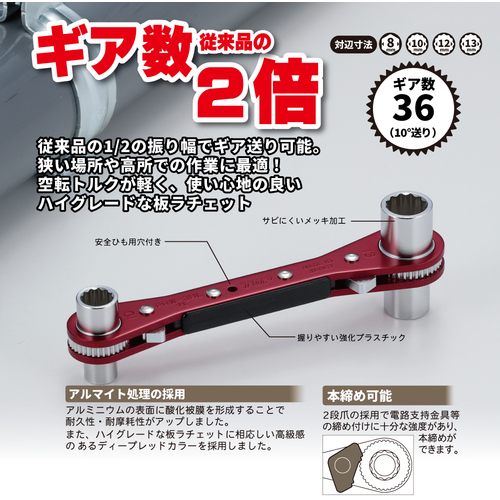 TOP ラチェットレンチ ハイラッチ 8X10・12X13mm PRW-3HL