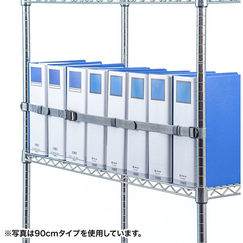 ●オープン棚に収められた書類、ケースなどの収納物の落下を防止するベルトです。