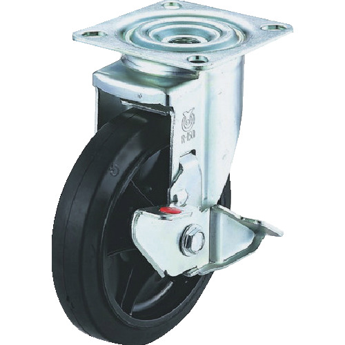 ユーエイ プレート式 自在 キャスター ゴム 車輪径150mm ストッパー付き Jタイプ RJ2-S型 取付寸法80×80(75×75) RJ2-150NWRS