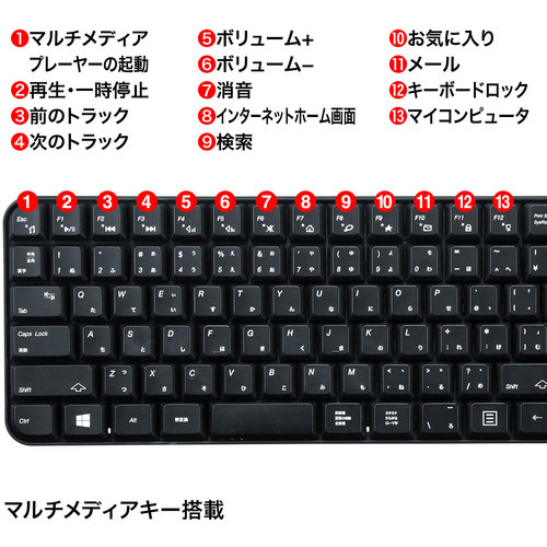 ●電源:単3形乾電池×1本(キーボード・マウス共)付属