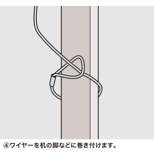 ●直径5mmまでのケーブルに対応)3.部品Aを部品Bにかぶせます。4.ワイヤーを机の脚などに巻き付けます。5.部品A・Bの穴にワイヤーを通し、鍵をかけます。
