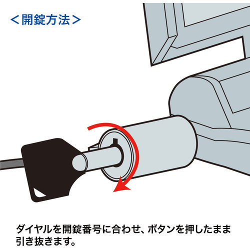 ●錠とワイヤーが一体型なので、邪魔になりません。