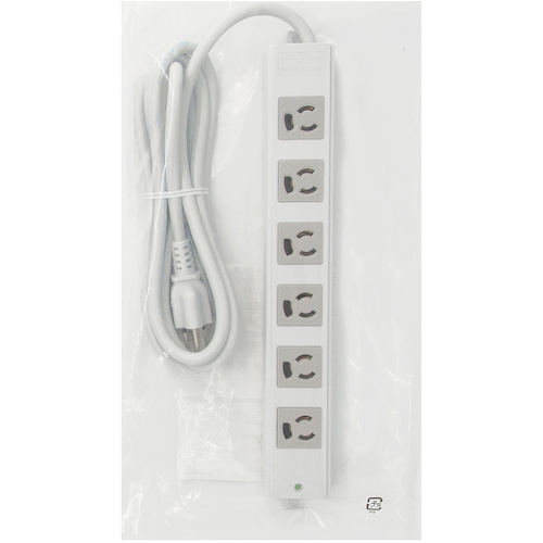 ●6個口・3P抜け止め、VCTFコード仕様、3Pプラグ(絶縁キャップ付き)のタップです。