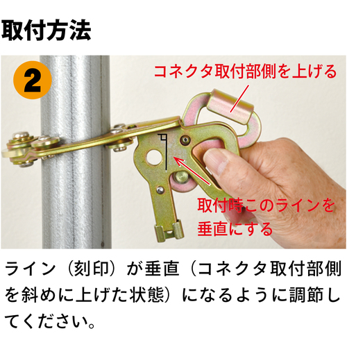 ●強固な単管(鉄製の単管:径48.6mm)に取り付けてください。