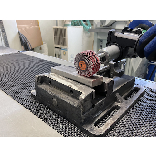 ●フラップホイールのソフトな感触に高硬度セラミック砥粒の研削力が組み合わさり、今までにない好感触の作業が行えます。