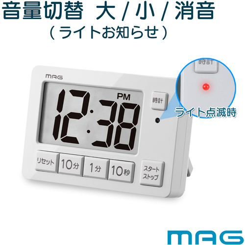 MAG ヒカルン 光でお知らせ ライト点滅 勉強タイマー 学習用 リピート機能 時計 マグネット スタンド TM-608LGY-Z TM-608 LGY-Z