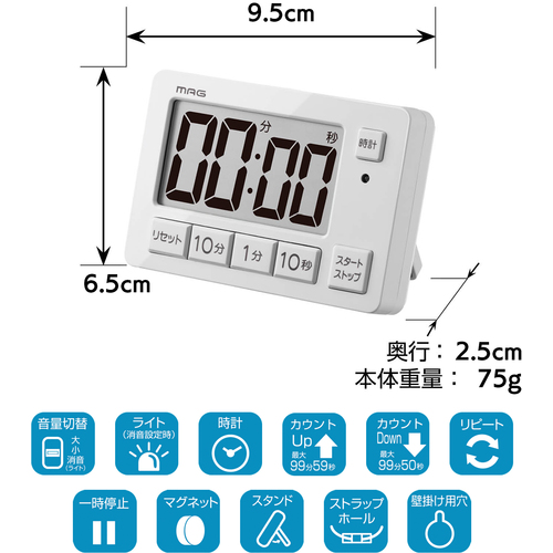 9. MAG ヒカルン 光でお知らせ ライト点滅 勉強タイマー 学習用 リピート機能 時計 マグネット スタンド TM-608LGY-Z TM-608 LGY-Z