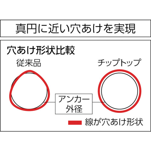 ●超硬チップ先端のセンターポイントが抜群の位置決め性能を発揮し、真円に近い穴あけが可能です。