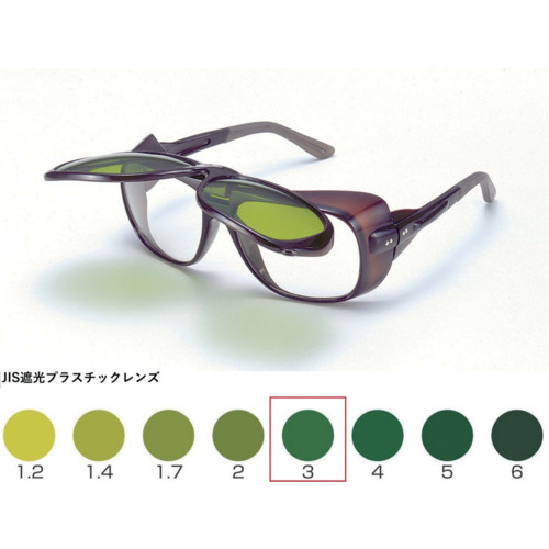 ●外レンズを跳ね上げられるアイカップ形W型JIS遮光めがね