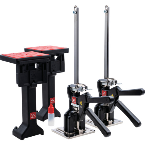 ●バイキングアーム(VA0091)×2丁、キャビネット設置アダプター(VA0084)×2個、ベースパッド(VA0114)×2枚、リフティングパッド(VA0121)×2枚、天然オイル入りボトル(10ml)×1本、収納用ケース×1個