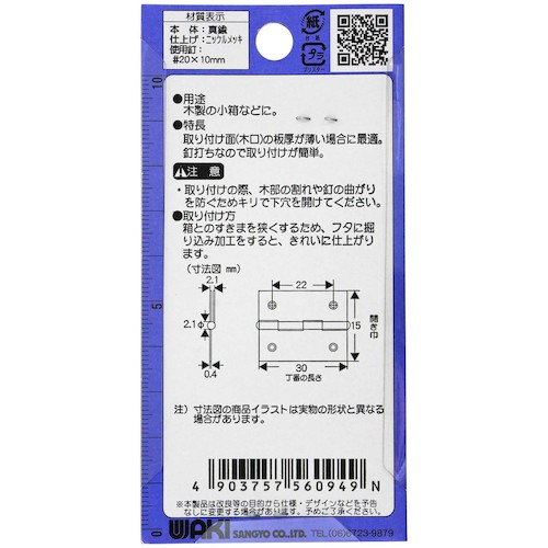 WAKI 真鍮Nメッキ巾広丁番 VF‐094 30mm VF-094