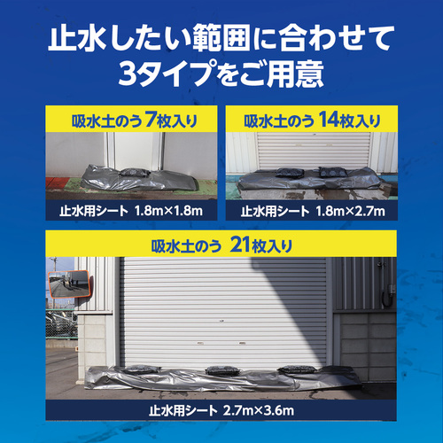 ●吸水土のう7枚×3●止水シート(1.8×1.8m)●シート製容器