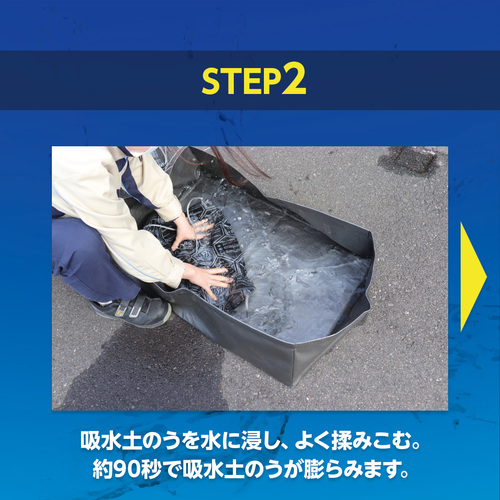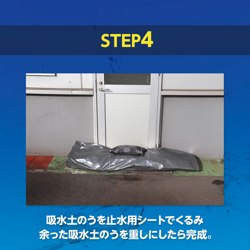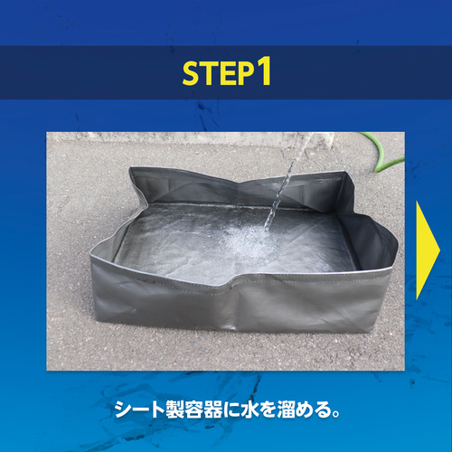 ●高さ約20cmの土のう壁が作れる、吸水土のう・止水シート・シート製容器のセットです。