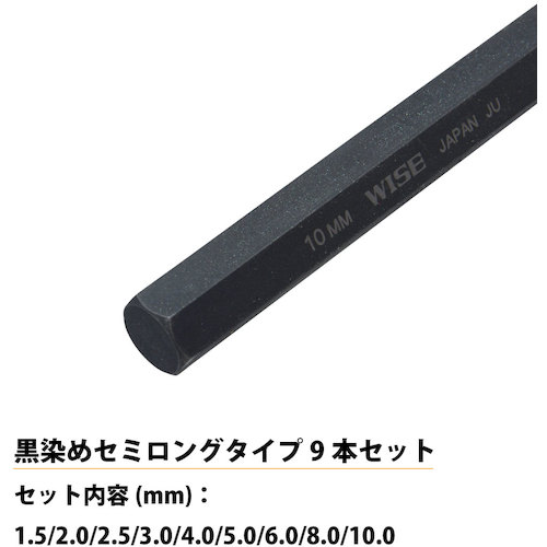 WISE 六角レンチ 黒染め9本セット(セミロング) WLH230B-9S