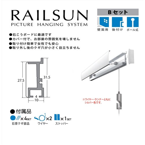 ●石膏ボード専用レールBセット ボール式ミニワイヤー自在