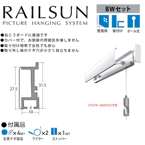 ●石膏ボード専用レールBWセット ボール式ホワイトミニワイヤー自在