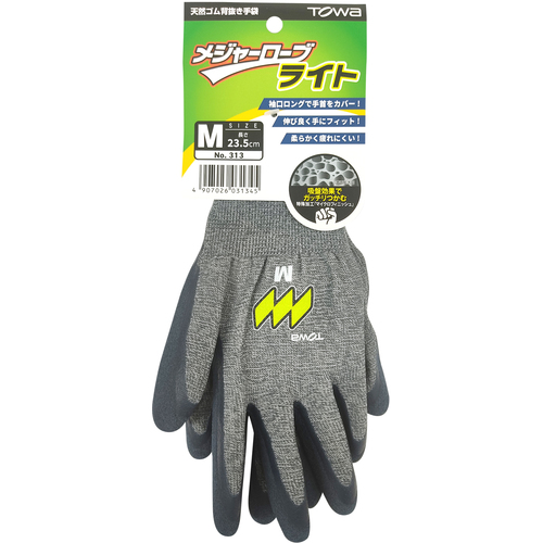 トワロン 天然ゴム背抜き手袋 メジャーローブライト M 313-M