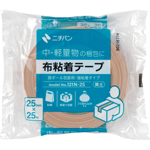 ニチバン ニチバン 布粘着テープ 121N 大巻 (中軽量物封かん用) 1巻入 黄土 25X25 121N-25