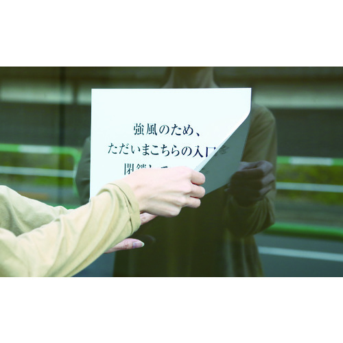●パソコンとレーザープリンタで印刷でき、貼り直しが簡単にできる、耐水・耐光性に優れた屋外用吸着シートです。