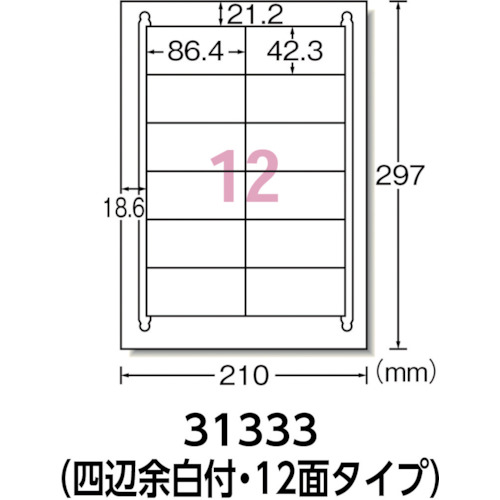 3M エーワン[[TM上]] ラベルシール(プリンタ兼用)再生紙 12面 四辺余白付 20枚入 31333